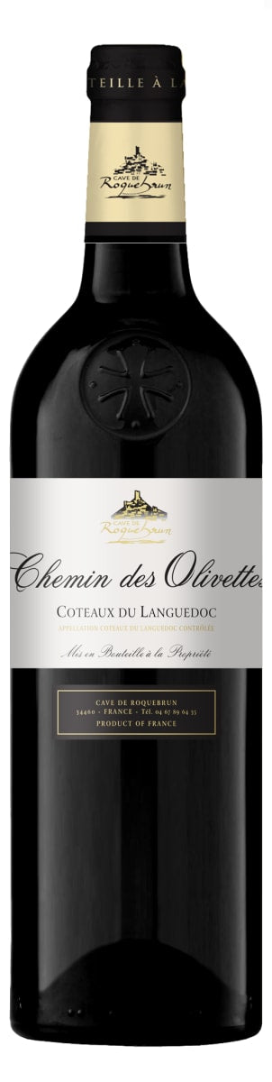 Cave de Roquebrun Chemin des Olivettes is a very nice deep red color. Complex nose with mineral notes, bright red fruit and spicy aromas. Very nice finish, elegant and complex. A blend of 45% Syrah, 30% Black Grenache, 15% Mourvedre, 10% Carignan