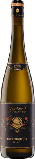 A brilliant golden yellow with light golden highlights, this wine presents itself in the glass. The nose is skillfully taken by tropical fruits - especially passion fruit and mango - and spicy-smoky nuances (thanks to the blue Devonian slate). The brilliant fruit flavors are also reflected on the palate of this German white wine, accompanied by a delightfully natural residual sweetness. Despite the lush interplay of fruit richness and residual sweetness, the Nik Weis Piesporter Goldtröpfchen Riesling does not lose its prancing lightness. The refreshing, complex acid structure gives this white wine the final touch.